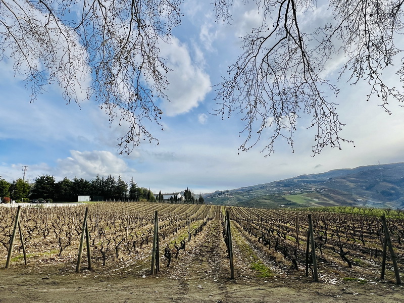 3月中旬杜羅河谷的葡萄莊園,葡萄均已摘得精光、光赤的枝椏正修眠養息,等待春天來臨再以萬花齊放之姿綻開。