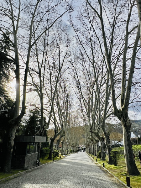光禿禿不知名的樹木矗立在車道兩旁,很有蕭瑟的寒意。
