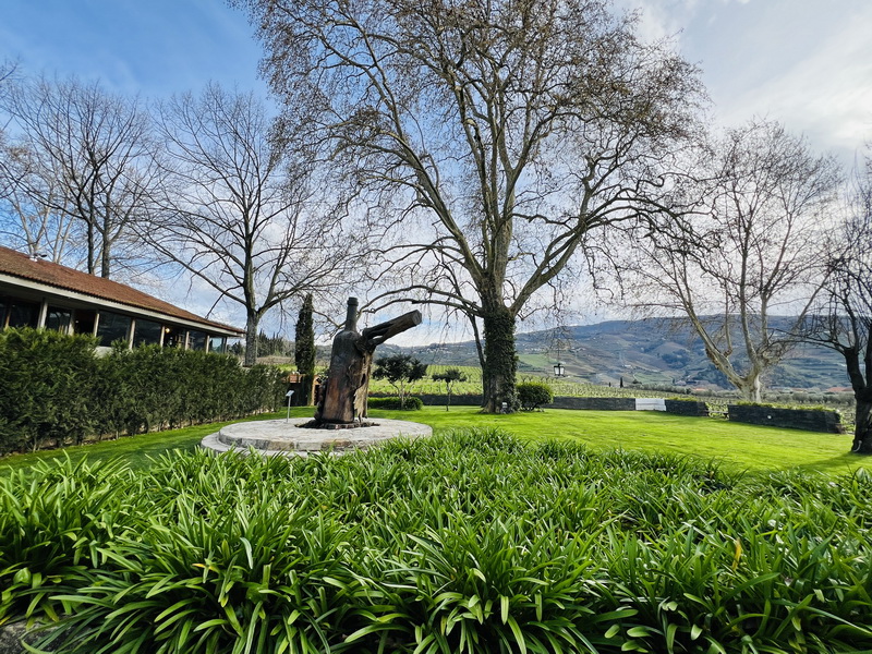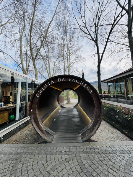 Quinta da Pacheca帕其卡酒莊入口有一座巨型葡萄和波特酒的造型木雕。