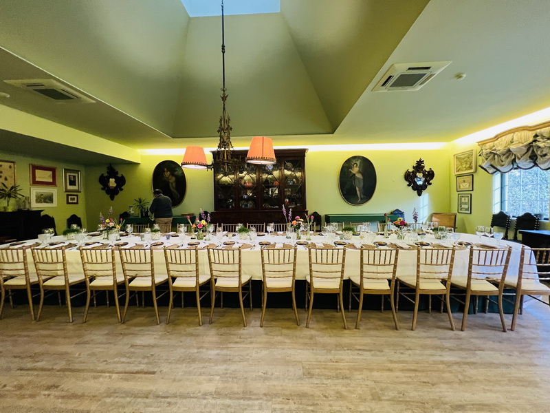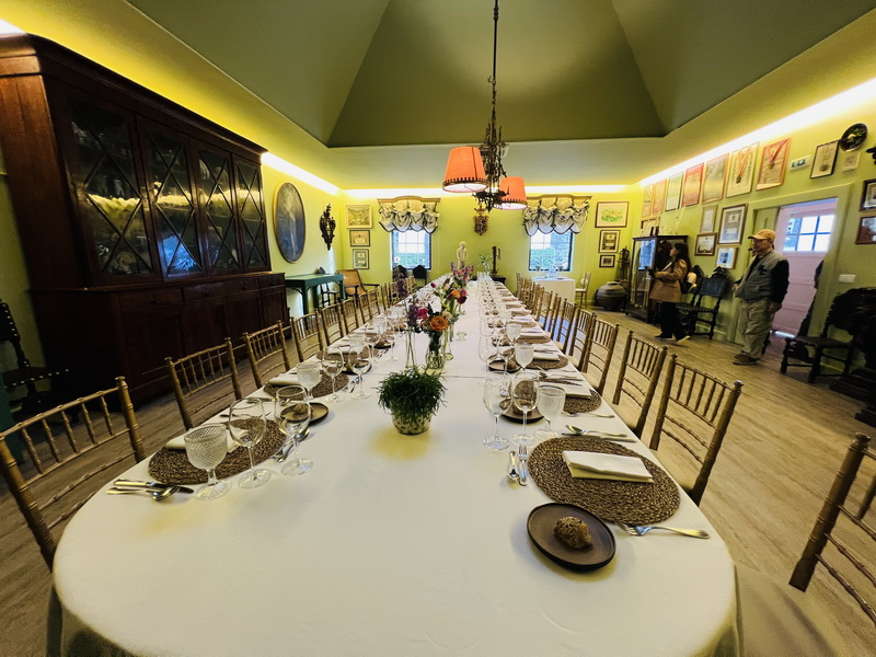 餐廳布置得非常典雅,桌上有不同的酒杯、以及西式餐具,還有美麗的鮮花花藝,牆上的掛畫,以及酒莊的收藏品,很有貴族用餐的環境。