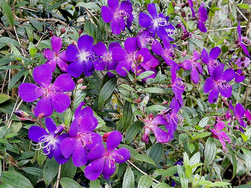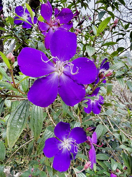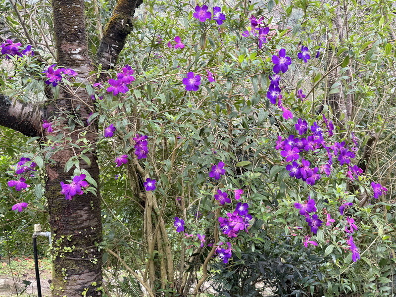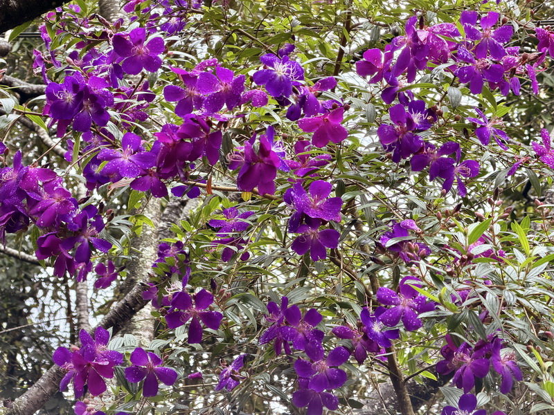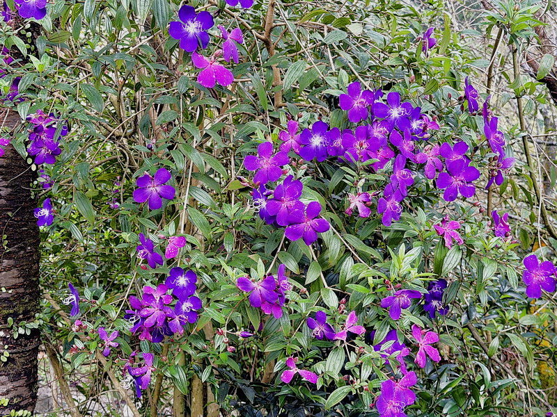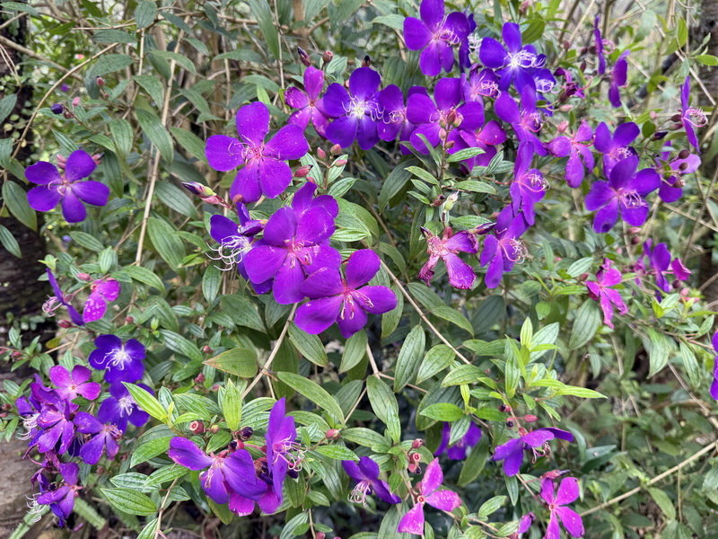 野牡丹那種搶眼的紫,開起來整片山坡像是被打翻紫色顏料,有夠誇張的漂亮。