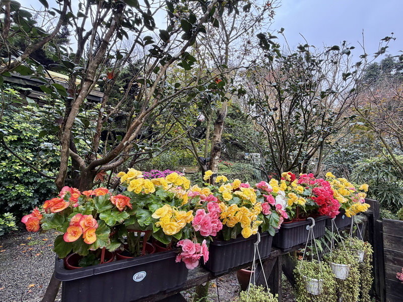 入門擺飾是球根海棠花(Begonia × tuberhybrida Voss),秋海棠科秋海棠屬,多年生肉草本植物,色彩艷麗,姿態優美;兼有茶花、牡丹、月季等名花的姿、色、香,為秋海棠之冠。