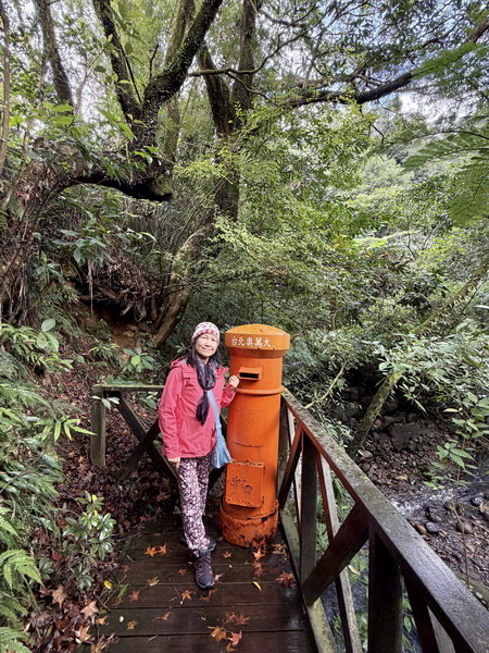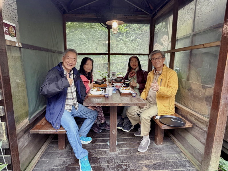 因為陰雨綿綿,遊客不多,好友漫步在蓊鬱的林木覺得很愜意。
