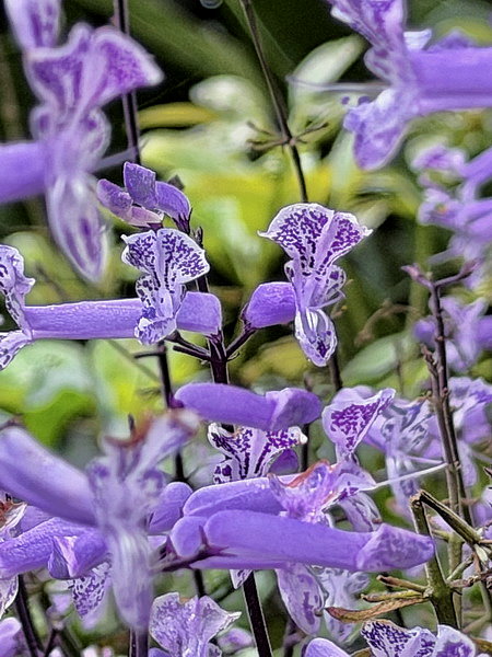 第一次看到好奇特的紫色花,用形色查詢得知是蒙娜紫也被稱為: 紫鳳凰,夢幻草,紫香茶菜。