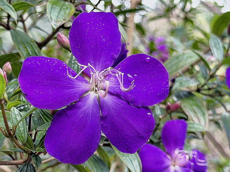 野牡丹(Melastoma candidum)在台灣土適應性佳,花朵有深紫、粉紅,大而美,有如牡丹般高貴的光澤與花型,故名野牡丹。