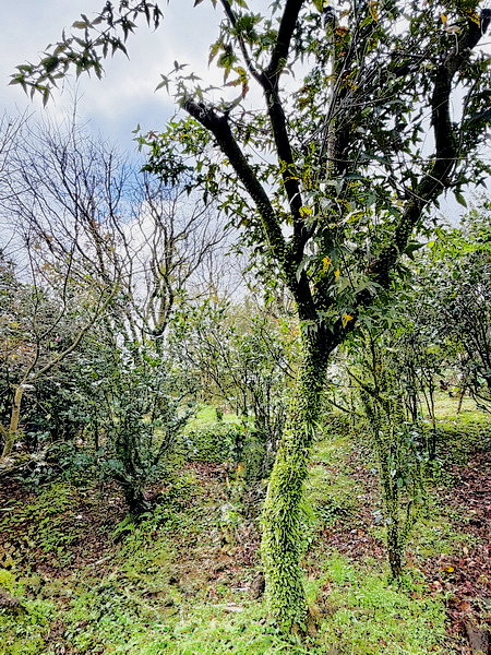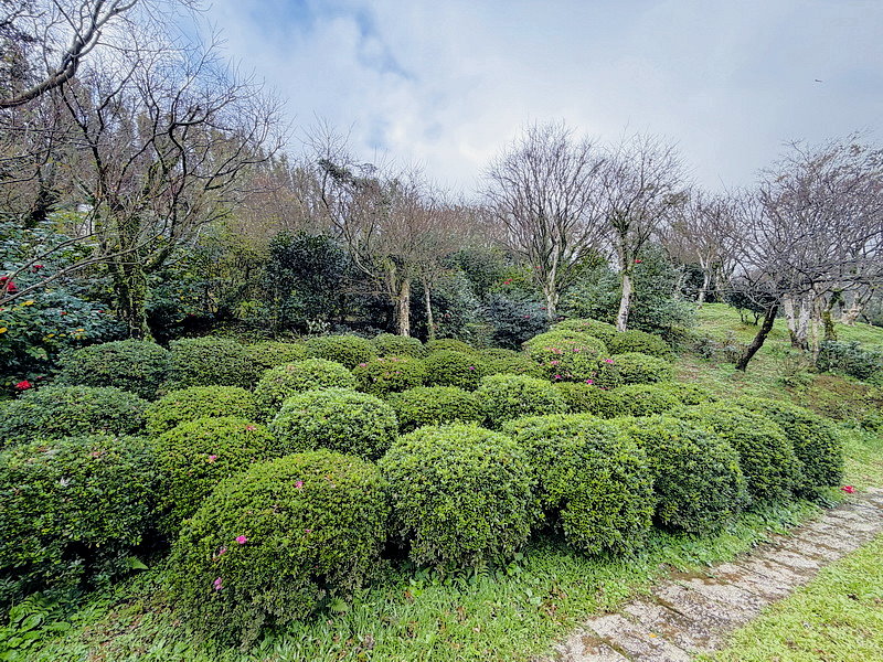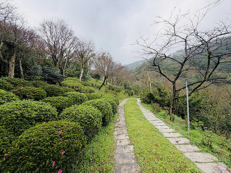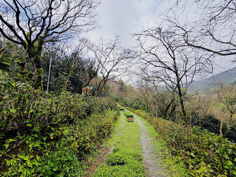 山坡上的步道,環繞蓊鬱的林木,彷彿是一幅畫作。