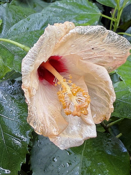 雨中扶桑花的透明花瓣彷彿薄薄的一層蟬衣,好神奇喔!