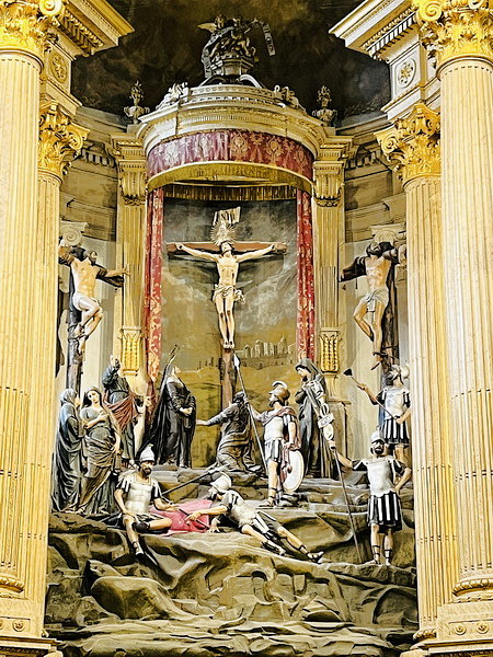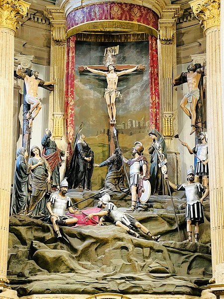 祭壇中有真人大小的耶穌像及受難人物。
