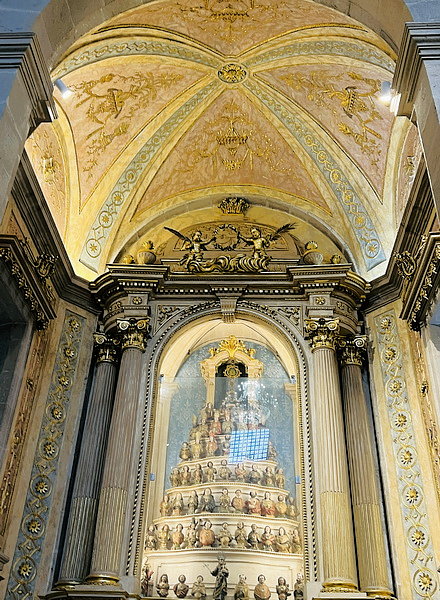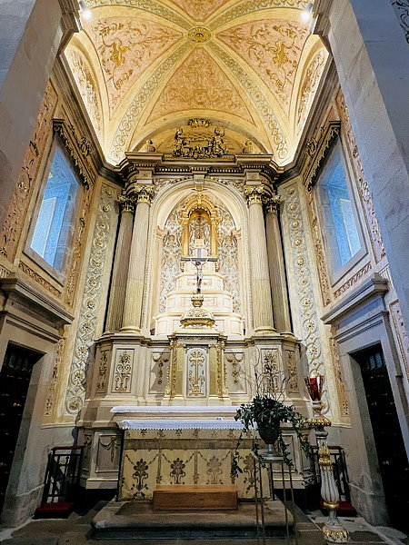 遺跡禮拜堂(Capilla de las Reliquias),祭壇上有六層高的櫃子,裡面有十幾位聖人的遺物,每件都標有聖人的小半身像。