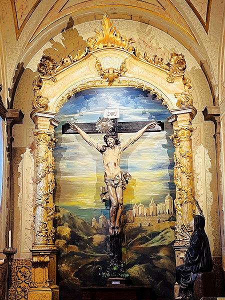 教堂內裝飾著耶穌受難的場景雕塑,如:抹大拉的瑪麗亞見證耶穌復活等…