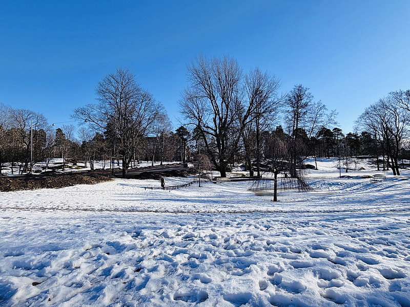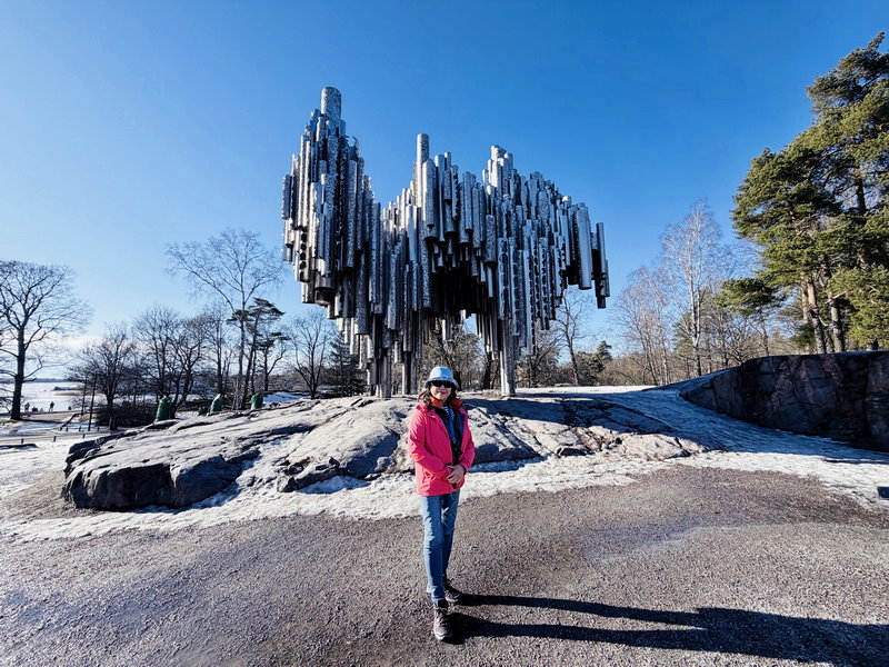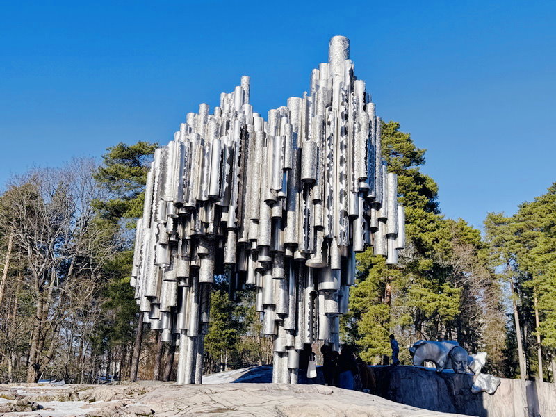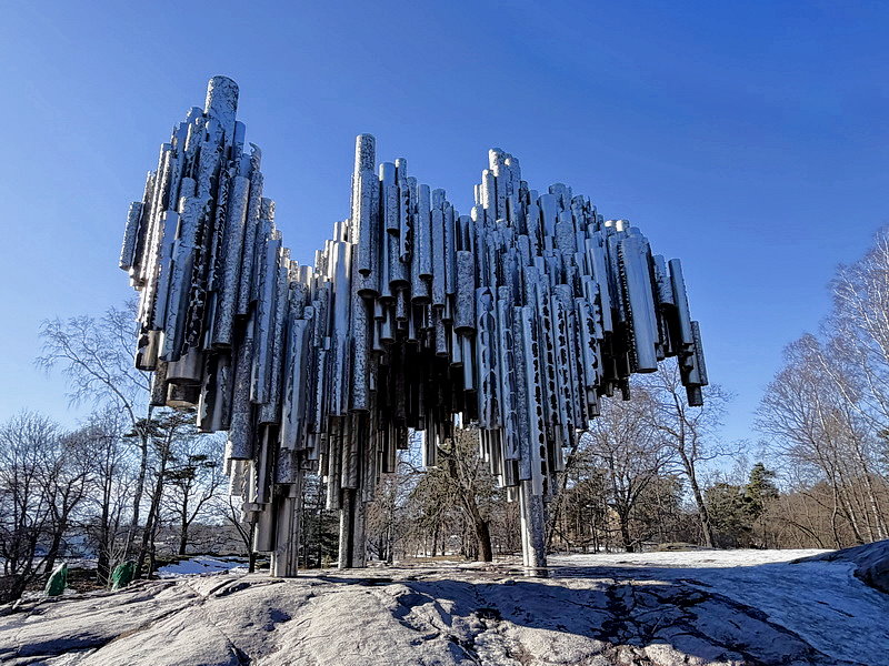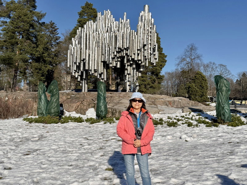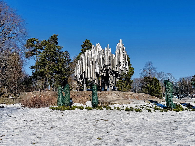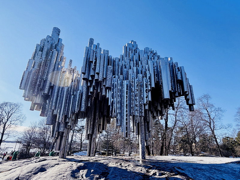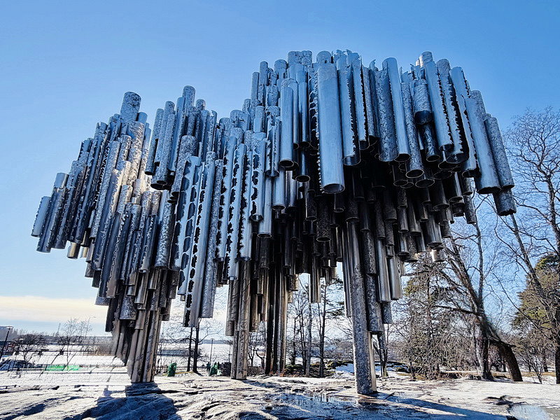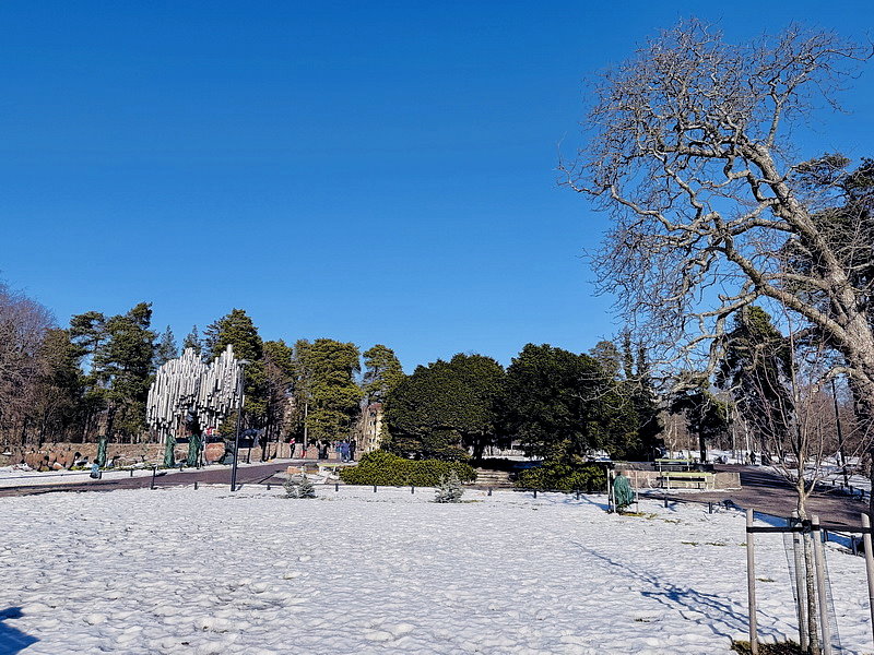 12:36到達赫爾辛基Helsinki,因5點要搭遊輪到愛沙尼亞的塔林,所以搭船前領隊安排赫爾辛基市區觀光,首先到西貝流士公園,沿途冰天雪地,到處都是銀色世界。公園最初取名為胡馬拉赫蒂自然公園(Humallahti Nature Park)、金內庫拉公園(Kinnekulla Park)。