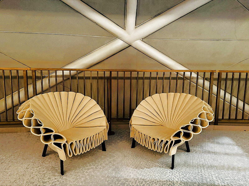 樓梯間的椅子彷彿是厚紙板摺成的樣品,實在太神奇啦!