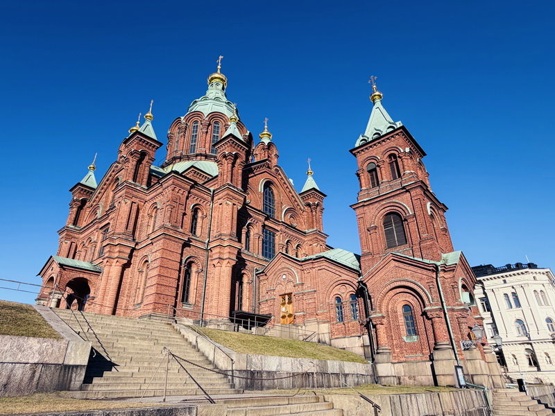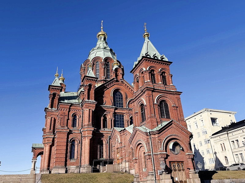 坐落於Katajanokka卡達亞諾伽半島山丘上、俯瞰Kauppatori赫爾辛基市集廣場的烏斯佩斯基教堂Uspenskin katedraali,耗時6年於1868年完成,是俄國建築師Aleksey Gornostayev葛魯諾斯太耶夫在世最後的作品。