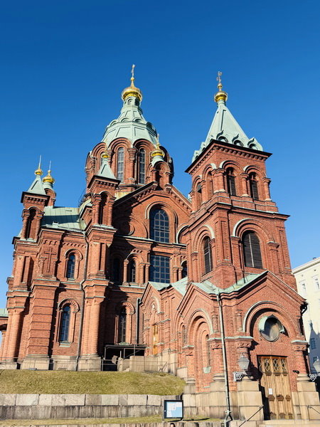 第二站前往山坡上的俄羅斯東正教堂~烏斯佩斯基大教堂(Uspenskin katedraali)或稱聖母安息主教座堂(Uspenski Cathedral)。位在卡達亞諾白半島山坡上的烏斯佩斯基大教堂是赫爾辛基三大教堂之一,被市民稱作「紅教堂」。