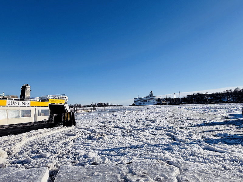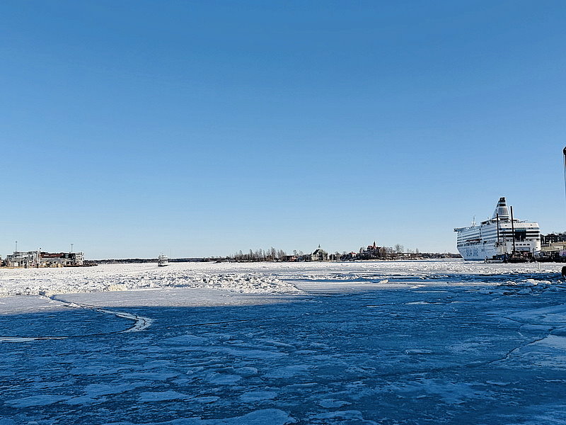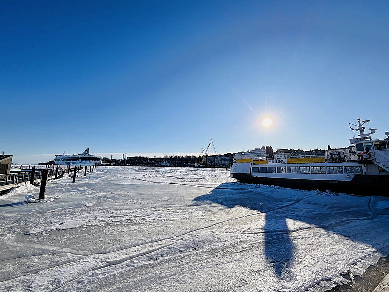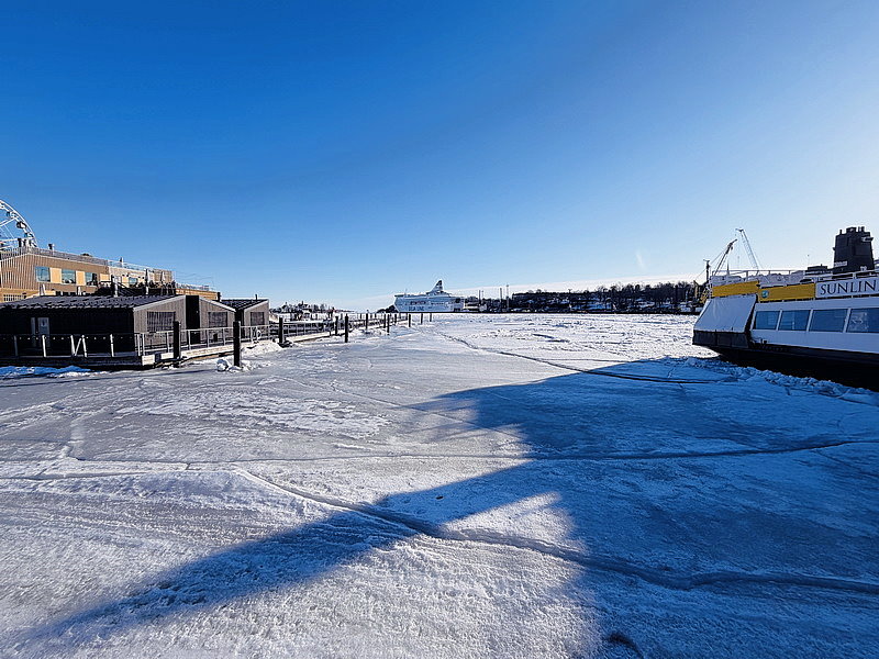 因為海水都結冰,感覺很不像是海港。