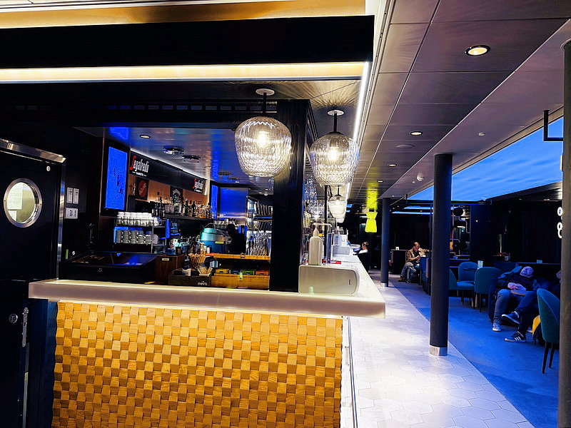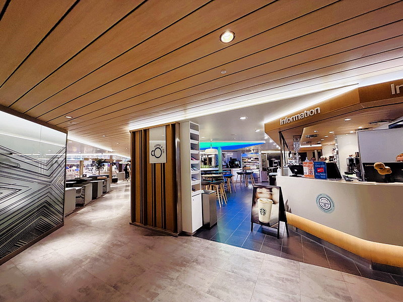 Megastar巨星號遊輪共有10層樓,餐廳及商店集中在8、9層,上船直接就到8層,這一區是休憩區。Star Class其實沒有特定座位,船上看到的位置都能坐相當隨意,9樓還有個半露天區,因晚上領隊說沒啥可看,就沒專程上去啦!
