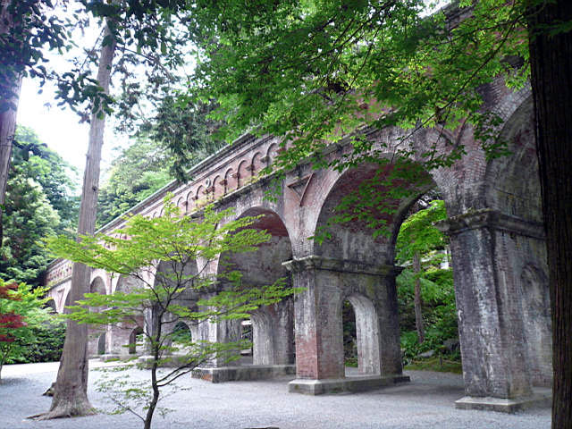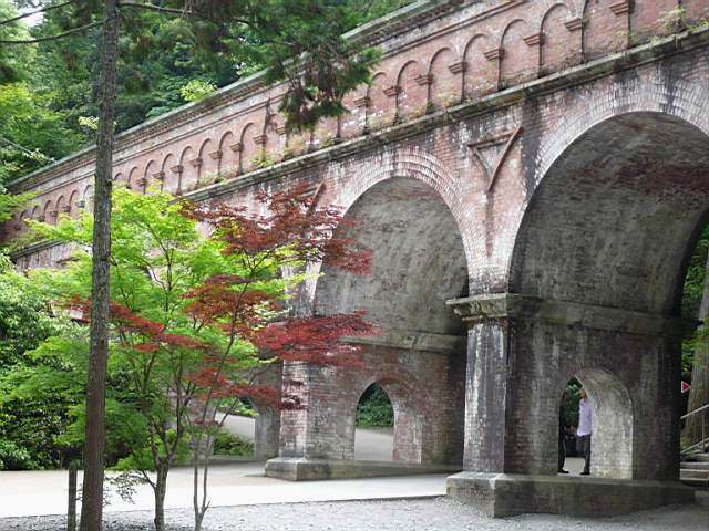 南禪寺最特別的地方就是琵琶湖疏水道,琵琶湖是日本最大的湖泊,位於京都的西北方。這條疏水道是連接京都與琵琶湖的運河,主要供發電和航運。在通過南禪寺這段,特別設計成紅磚的拱形橋(橋是供水過的,也是奇聞),配合著古木參天,別有一番風味!
