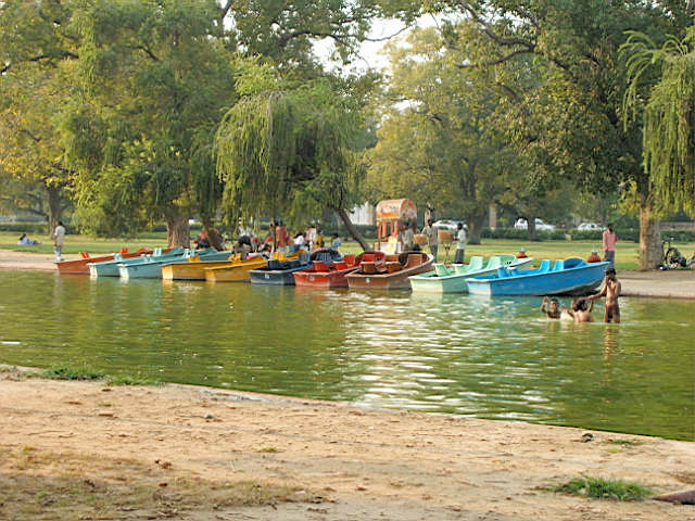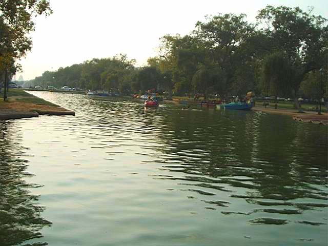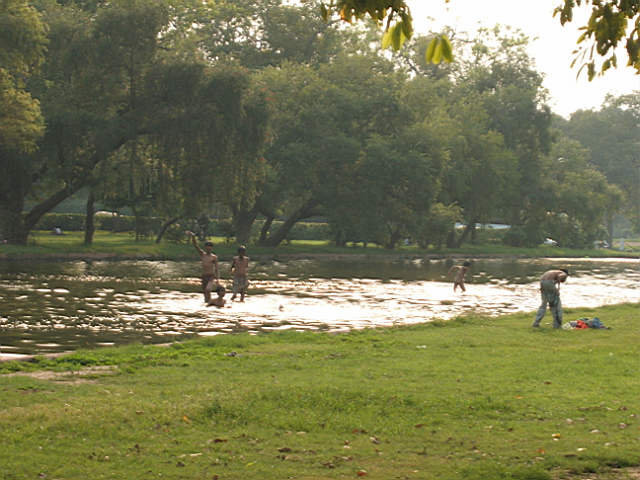 繞著印度門周邊,還有一條河流,很多民眾戲水呢!