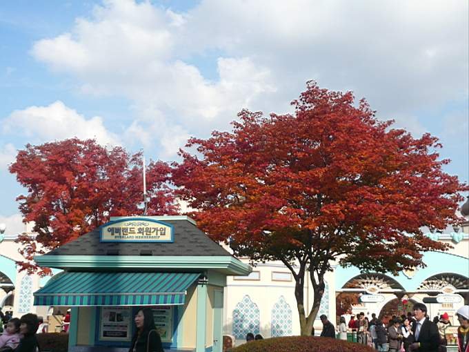 秋天的愛寶樂園,美麗豔紅的楓樹處處可見。