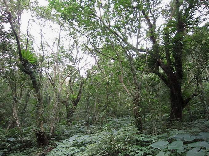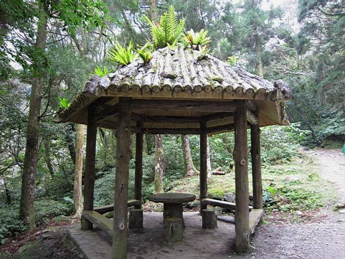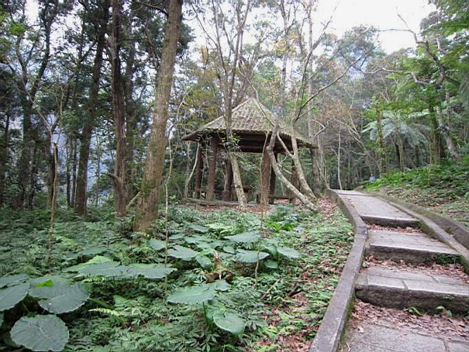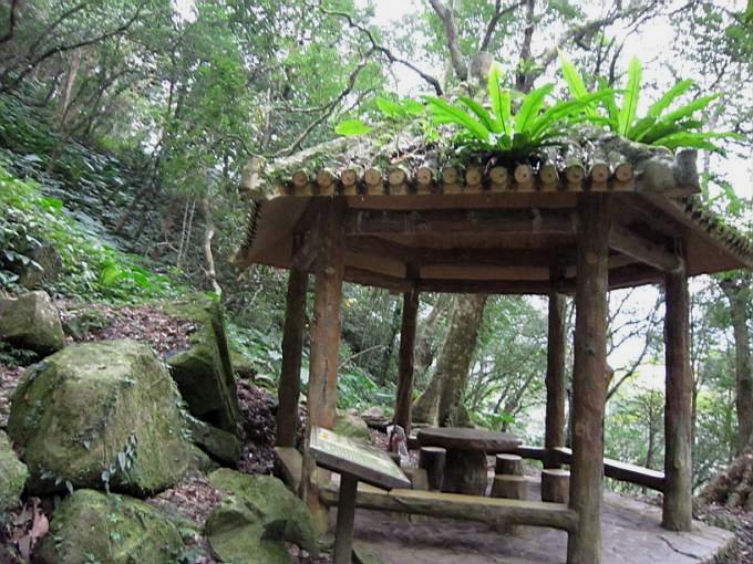自導式步道旁的涼亭屋頂上居然有鳥巢蕨(就是山蘇)棲息在此呢!