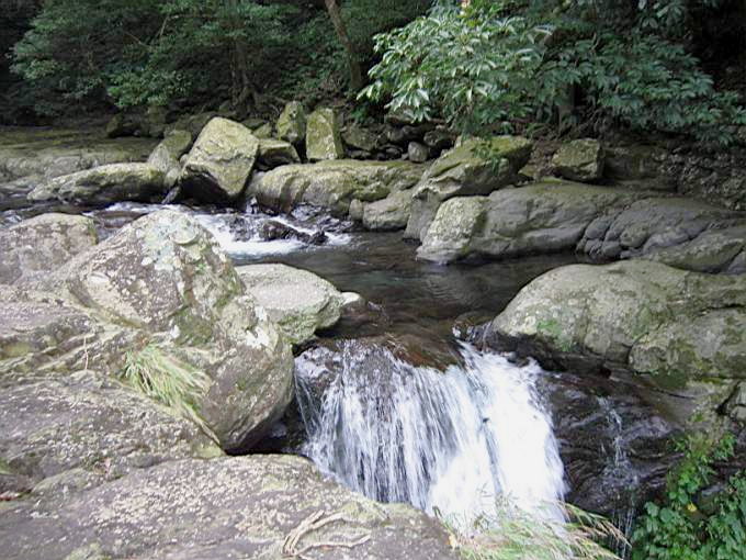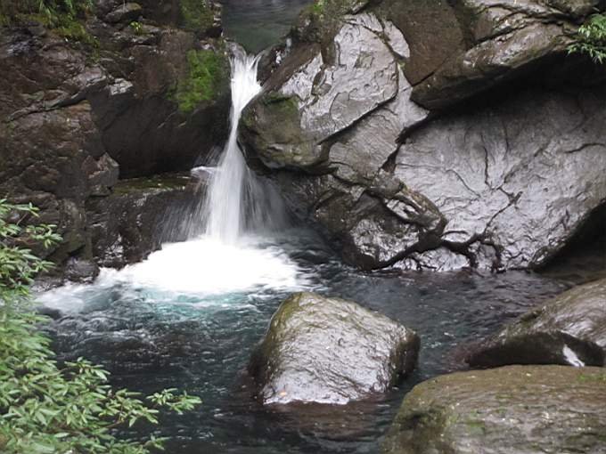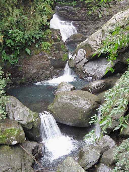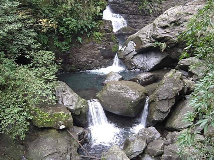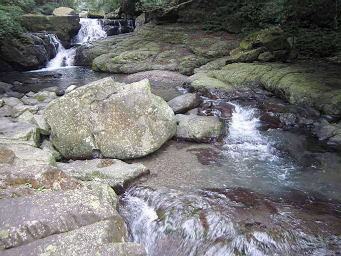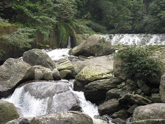 兩瀑布間有步道相連,繼續往滿月圓瀑布前的溪邊觀景處,上游有小瀑,但並非滿月圓瀑布。當時我還以為滿月圓瀑布只不過爾爾....