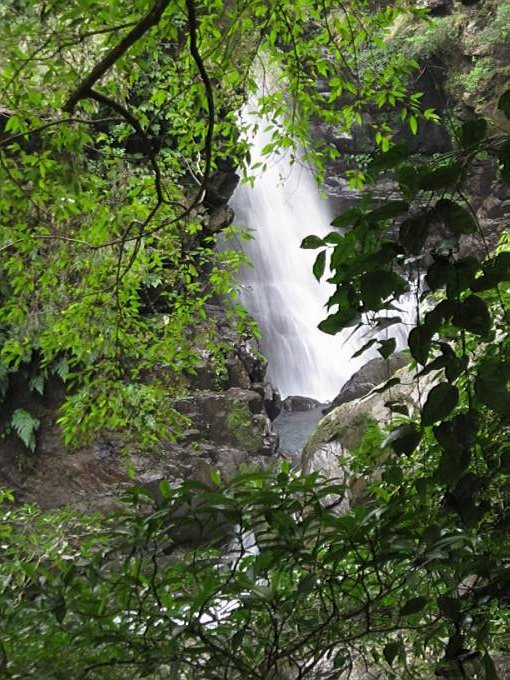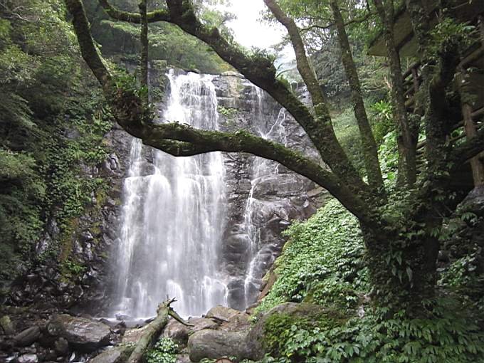 在觀瀑平台拍攝的處女瀑布~大樹旁可看到兩層的觀瀑涼亭呢!