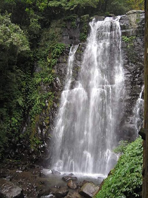 滿月圓瀑布發源於滿月圓山,瀑水高20公尺,水量充沛、氣勢磅礡,雖略遜於處女瀑布,但優雅更勝一籌;但要飽覽滿月圓瀑布全貌,就要至對面山腰的觀瀑亭。可惜當時shine不知道,而旁邊的小路居然封閉,所以滿月圓瀑布只能拍攝到這個畫面囉!