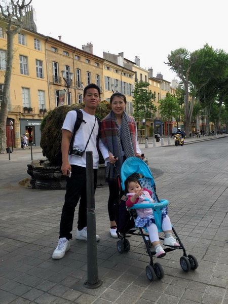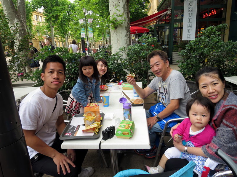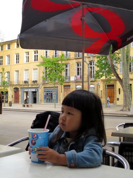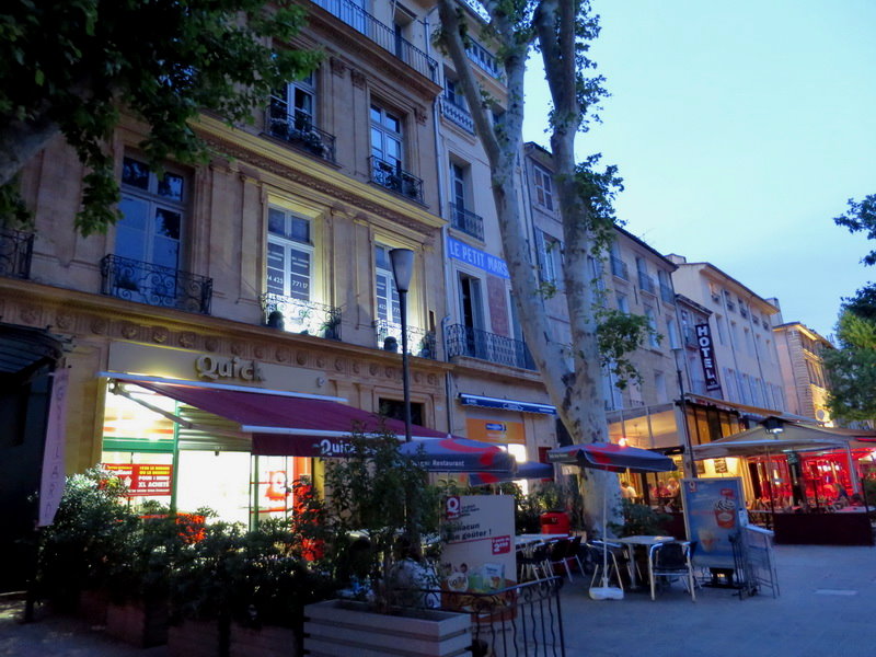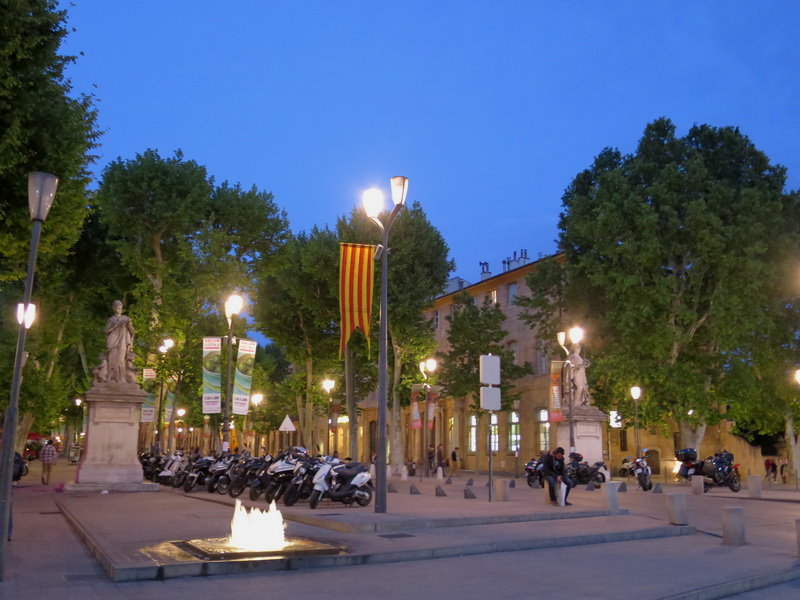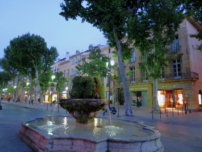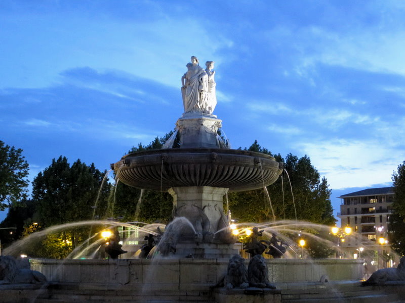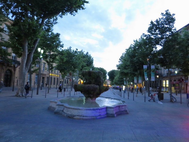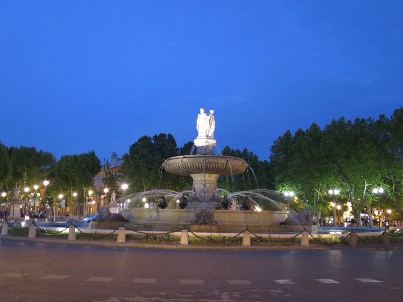 5/25傍晚到達艾克斯Aix,入住飯店後立馬出門找晚餐及遊覽;廣場上的噴泉,極其雄偉漂亮,那是艾克斯市內最大的噴泉,直徑有32公尺,由於體積龐大,又坐落在交通要道之上,所以分外矚目。