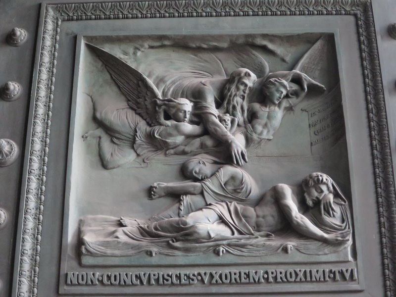 馬德蓮大教堂的大門是巴黎所有教堂當中,最大及最重(3.2噸),且最精彩的一座,描繪聖經中「十戒」是雕刻家德特里可提(Henri de Triqueti)的傑作。