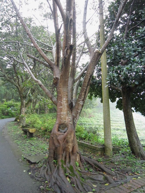 文山農場的員工聽說只有10多人,農場工作之餘還要兼導覽介紹,我們在步道留連時,有個熱情的員工告訴我們茶園都是有機栽種,不添加任何農藥,連水源都不是外來,所以產製茶葉的品質很優良;但冬茶早就販售一空。這是一棵超級"七里香"~七里香又名月橘,葉片整年翠綠,樹形較榕樹小,是屬於芸香科的常綠灌木或小喬木。但此棵七里香實在很壯觀!