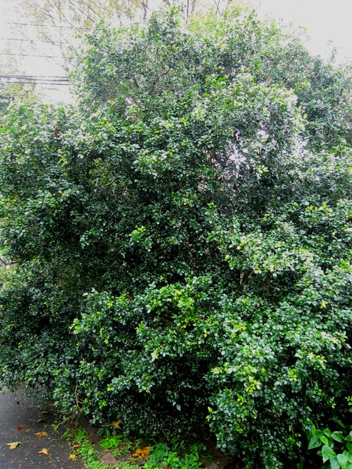 這兩棵是大葉山欖樹為常綠性大喬木,株高可達20公尺,其樹性極為強健,耐鹽、抗旱、抗風、耐濕,惟在開花時,花朵會產生特殊味道。