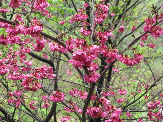山櫻花屬薔薇科,櫻屬。與桃、李、梅、杏同科。山櫻花又稱為緋寒櫻,為台灣原生種,有深紅系的霧社種和粉紅系的竹子湖種,是台灣分佈最廣的櫻花樹種。