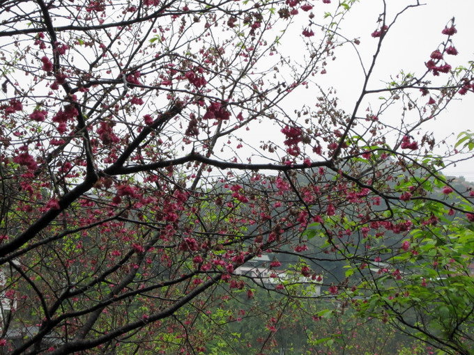 深紅的花色應該就是山櫻花…