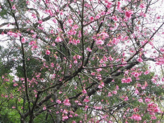 重瓣緋寒櫻俗稱八重櫻或牡丹櫻,是台灣原生緋寒櫻的栽培種,花瓣多重,花色豔紅,花期通常在1~2月