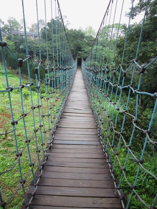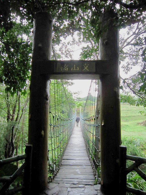文山橋是座尼龍繩製作的吊橋,遊客少走來很有趣~~