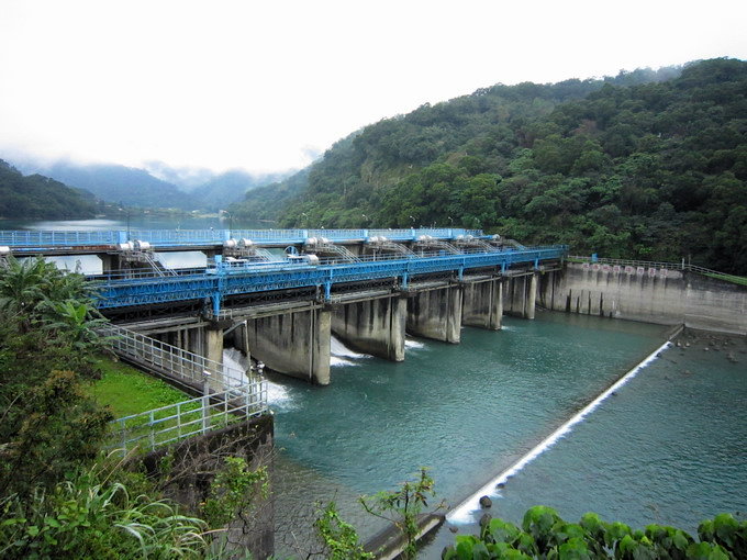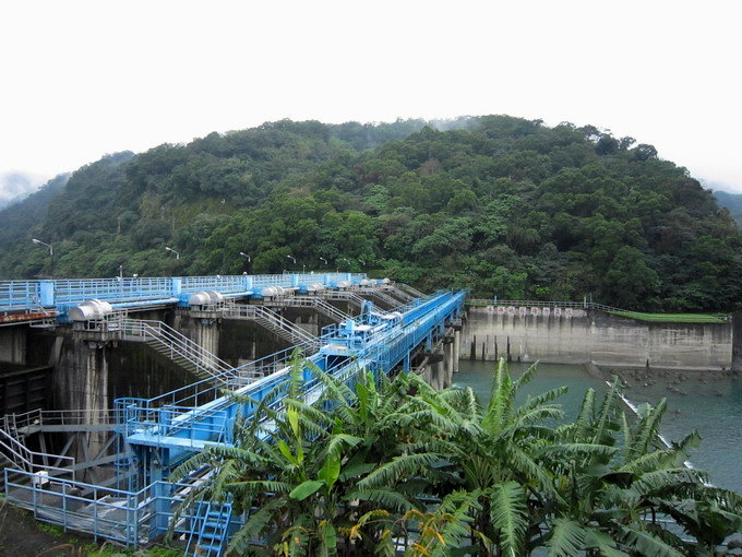 「直潭壩」位於「屈尺壩」下游約3公里的新店溪上,興建於民國62年,67年完工蓄水,混凝土壩體高12.5公尺,壩寬117公尺,主要以7座弧形閘門控制及抬高水位,送直潭淨水場處理,為大台北地區主要水源。