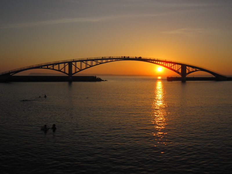 澎湖 黃昏的觀音亭只要是晴朗的天氣,常常可以欣賞到觀音亭的夕陽餘暉及彩虹橋下的夕陽呢!