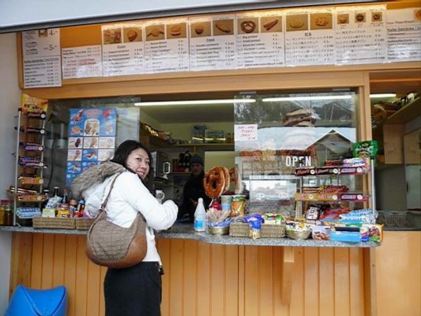 在登上新天鵝堡的中途商店,遠眺美麗雪景。