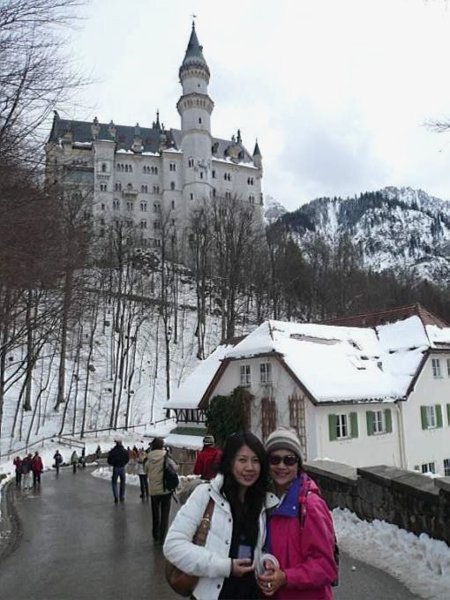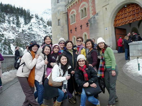 從山腳到達新天鵝堡有三種途徑,走路、小巴士或是搭馬車;同團88歲的阿嬤也走路上來呢!我們這群崇拜者當然要和她留下紀念照囉!