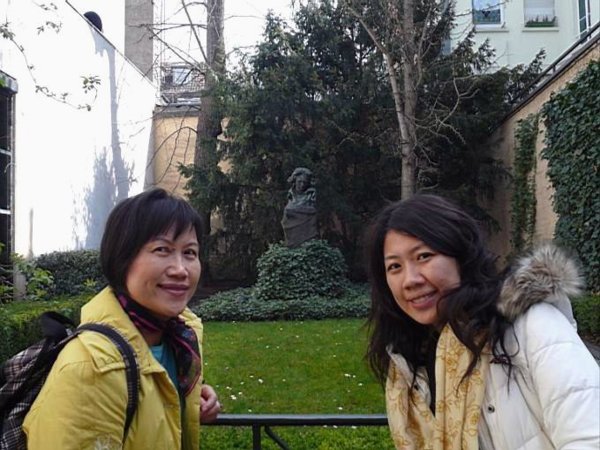 屋後的小庭院裡舖滿了常綠的青草,牆壁上爬滿了不規則的藤蔓,院子裡擺著兩座貝多芬的頭像雕塑,緊蹙的眉宇之間彷彿仍在思索著全世界最深沉的旋律。