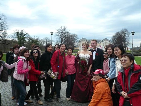 我們一進入奧古斯塔斯堡前看到一對新人,大家就搶著和他們合照囉!