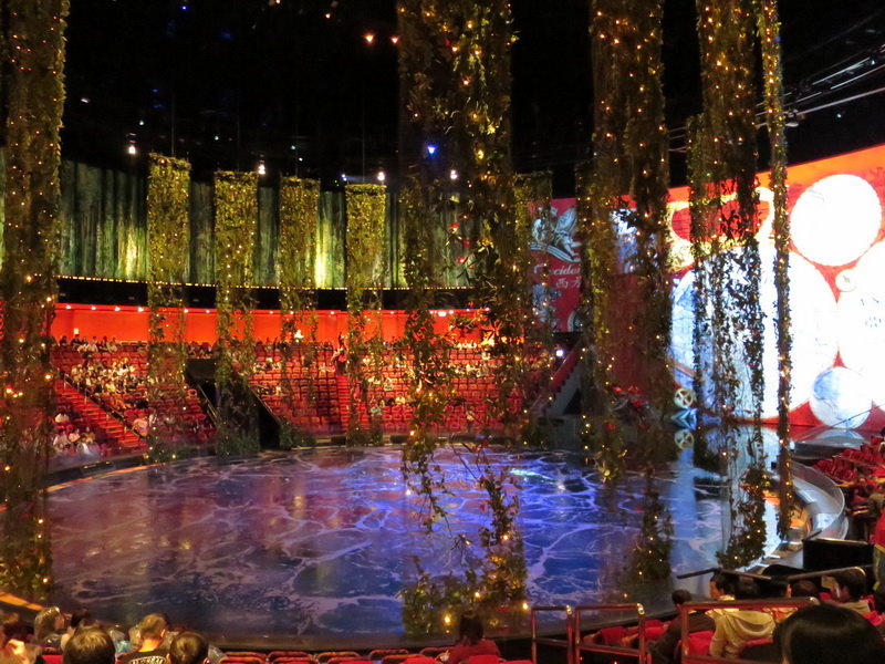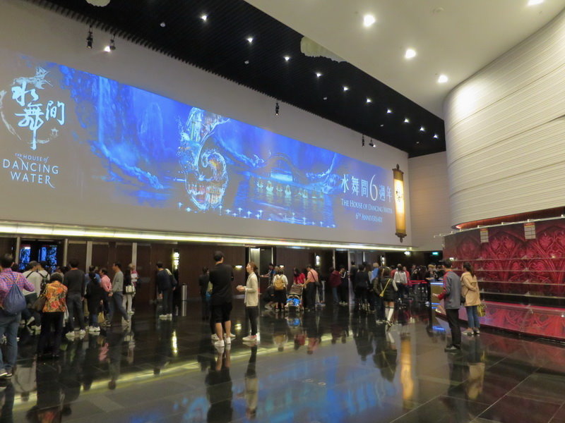 水舞間一天兩場: 17:00與20:00 (星期二,三休息),我們是觀看5點場;水舞間劇院位於氹仔新濠天地,離我們住的威尼斯人很近,過馬路就到了。