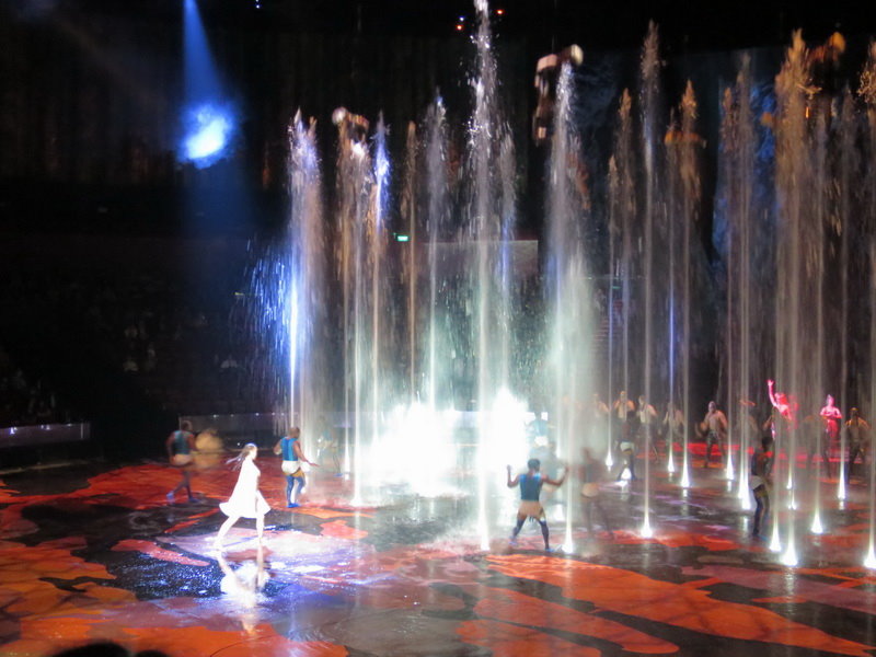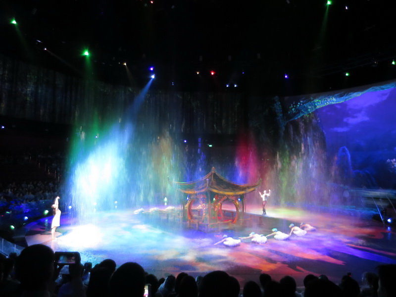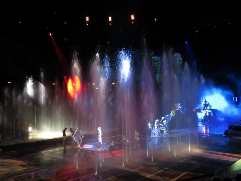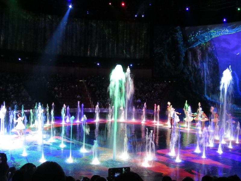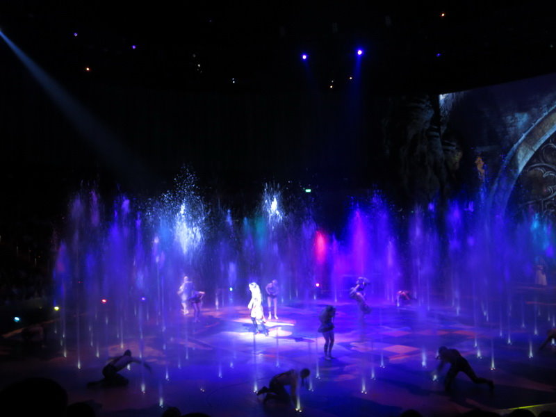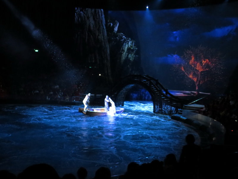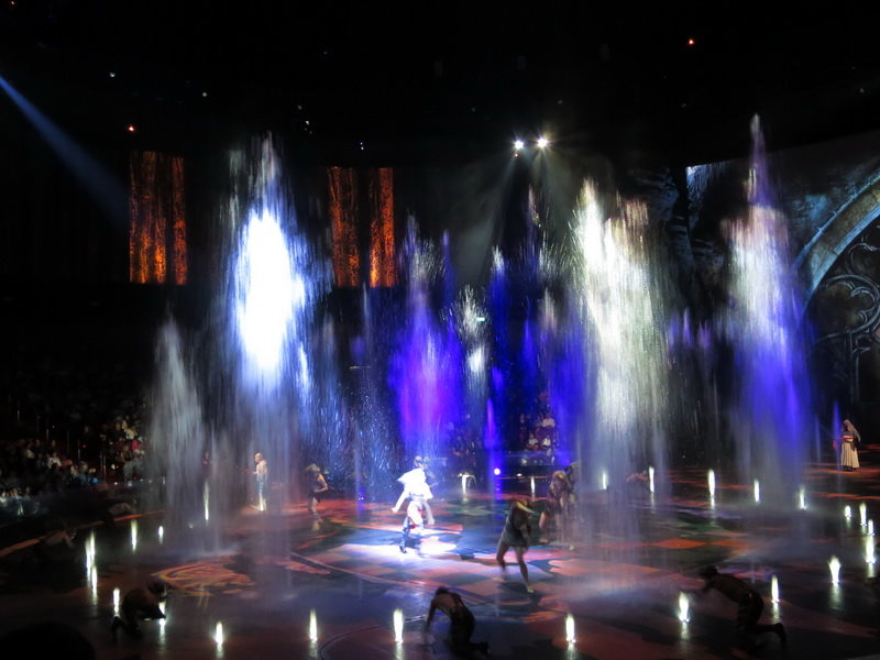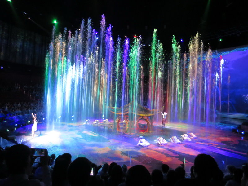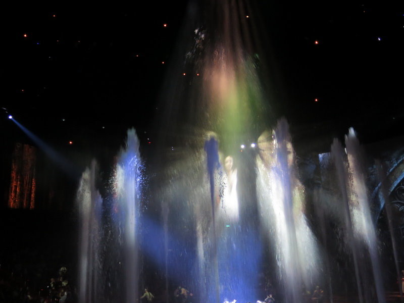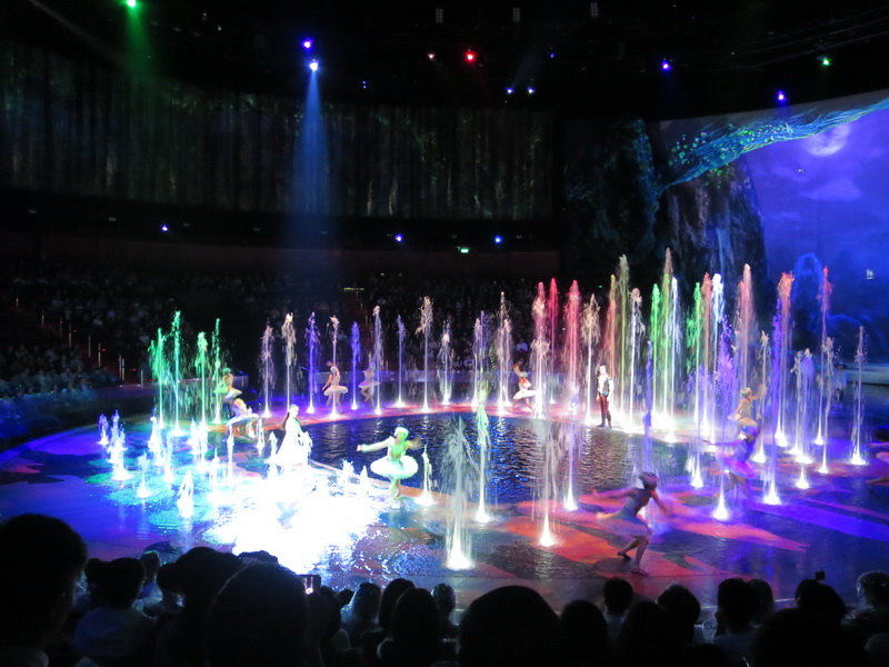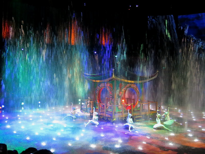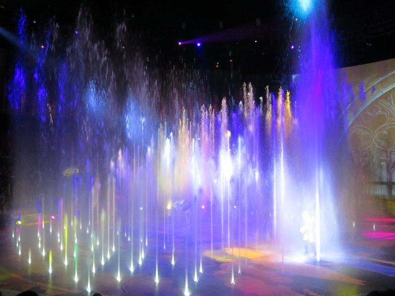 水舞間的舞台設計真是驚人,忽而陸地,忽而水池,忽而噴泉,瞬息變換的場景,只能說這是一場目不暇給的藝術特技表演,精彩絕倫。
