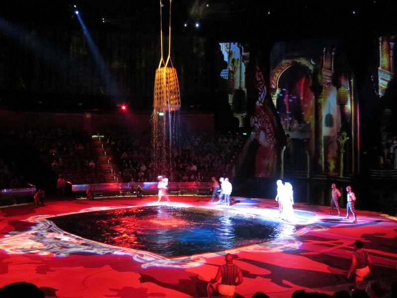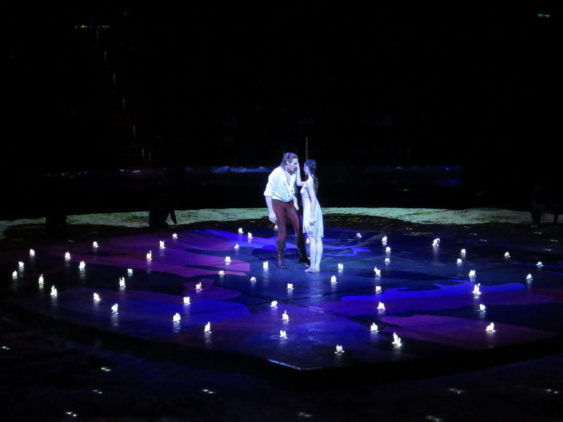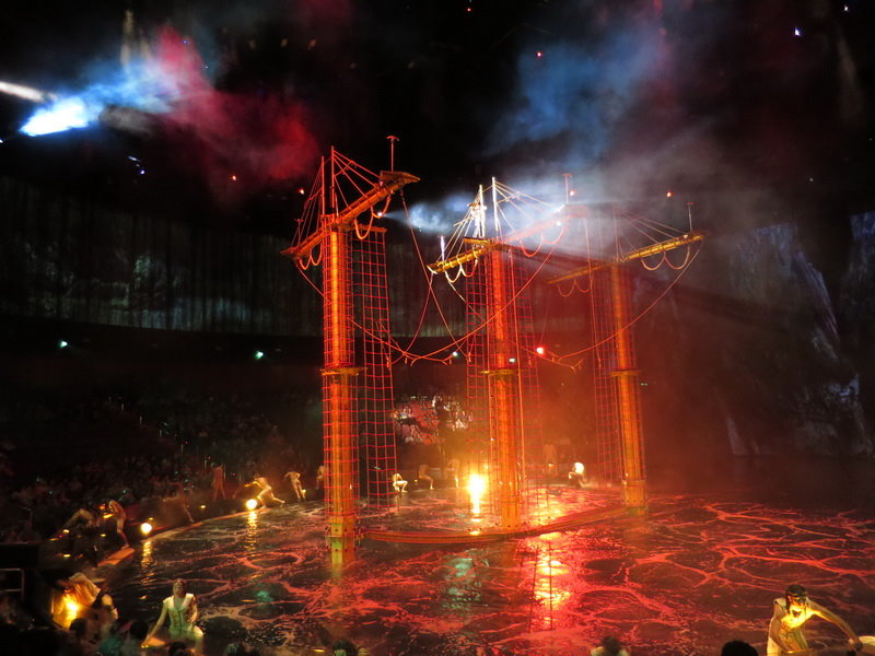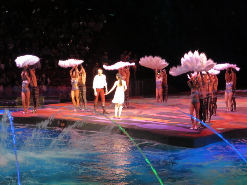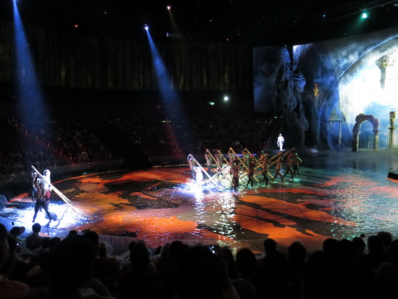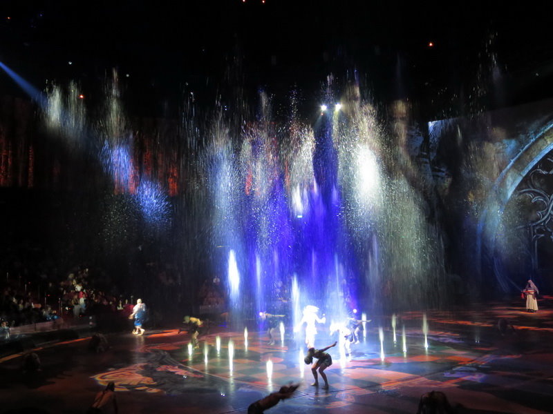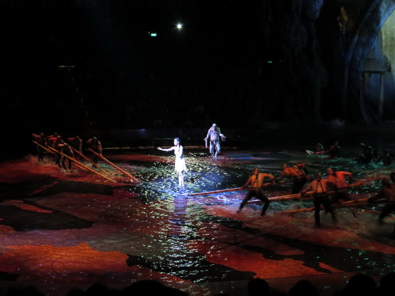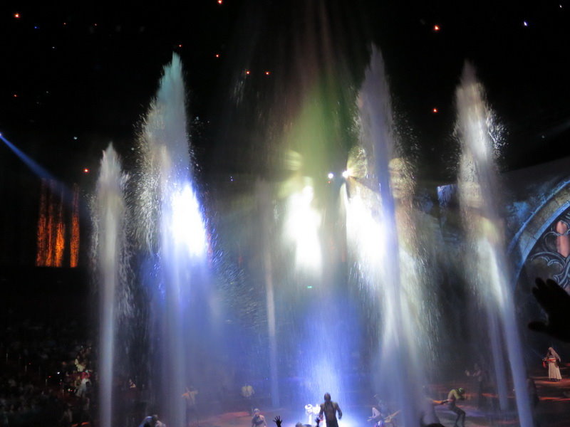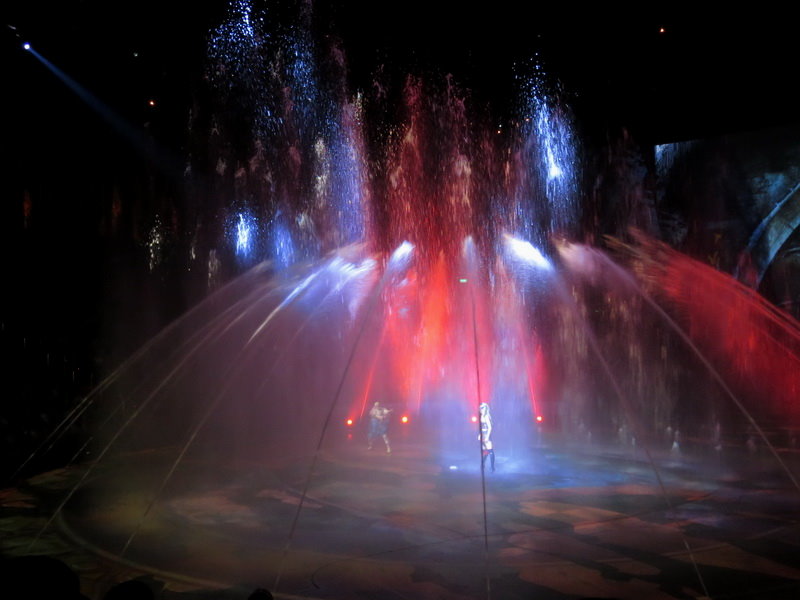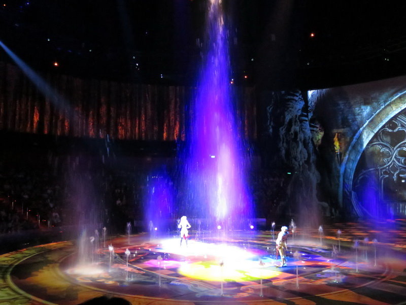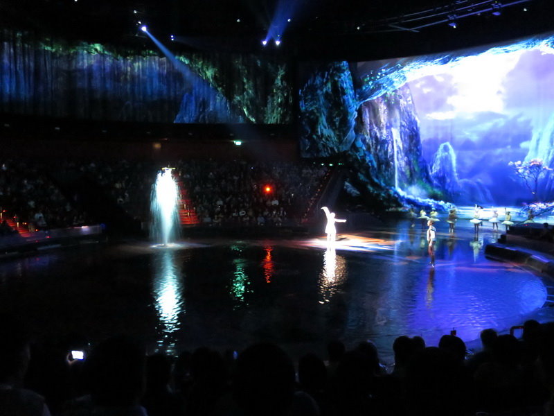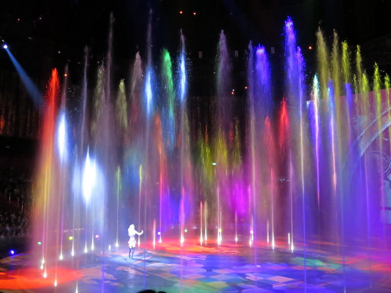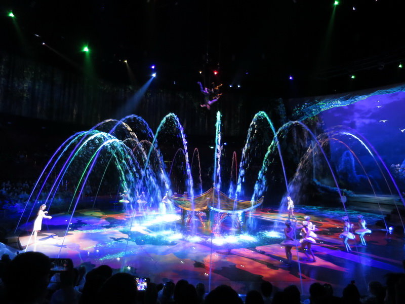 水舞間的舞台設計真是驚人,忽而陸地,忽而水池,忽而噴泉,瞬息變換的場景,只能說這是一場目不暇給的藝術特技表演,精彩絕倫。