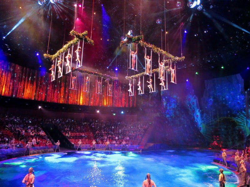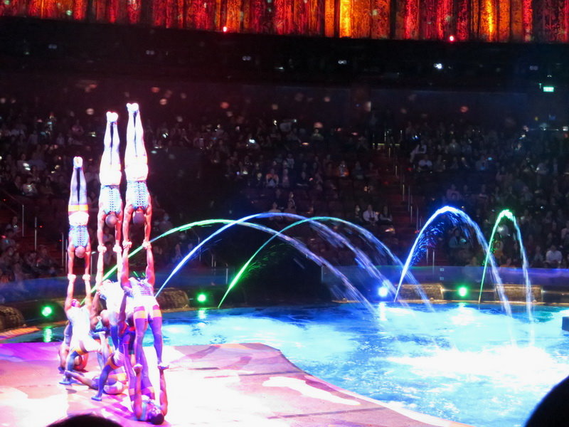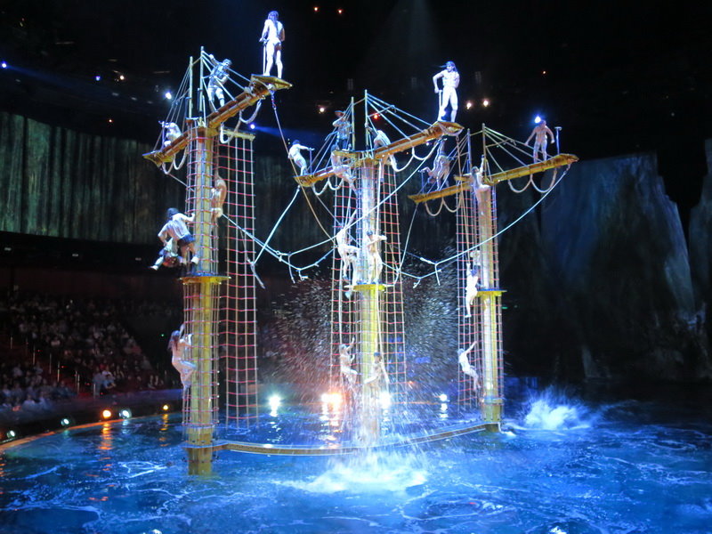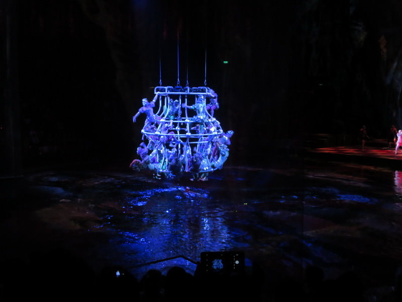 這個高空中的人體吊燈也很驚人,20位表演者在高空中整齊劃一的高難度體操動作,真是驚險萬分,整個水舞間的表演就是這樣扣人心弦;