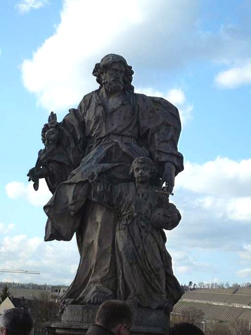 舊美茵橋,橋的兩旁是一座座主教的雕像。古往今來橋上人來人往,不知有多少悲歡離合淒美的故事在此發生,真是令人感動啊!