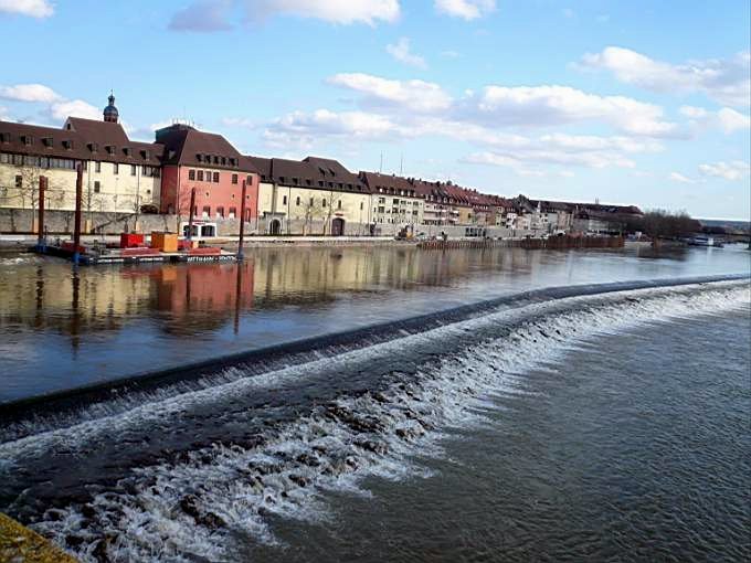 舊美茵橋Alte Mainbruecke建於十五世紀,橫跨於美茵河上,連接瑪麗恩堡要塞及烏茲堡的舊城區,橋上排列著十二位聖人的雕像,從橋頭就可以清楚的看見聳立於對岸山丘上的瑪麗恩堡要塞。