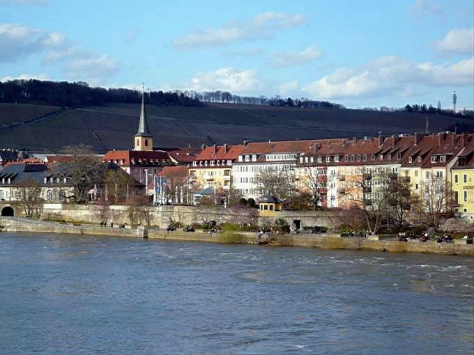 從舊美茵橋遠眺對岸山丘上,一座雄偉華麗的瑪麗恩堡要塞(Marienburg)展現眼前,那種美與靜,會讓人沉浸在中古世紀詩意的境界裡。