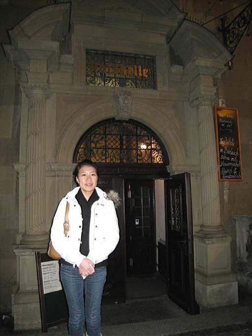 在烏茲堡市政廳內享用晚餐後,shine女兒門口留念囉!