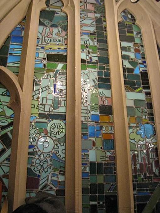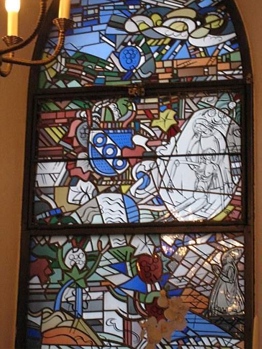 市政廳餐廳內的彩繪玻璃窗很多,很美喔!